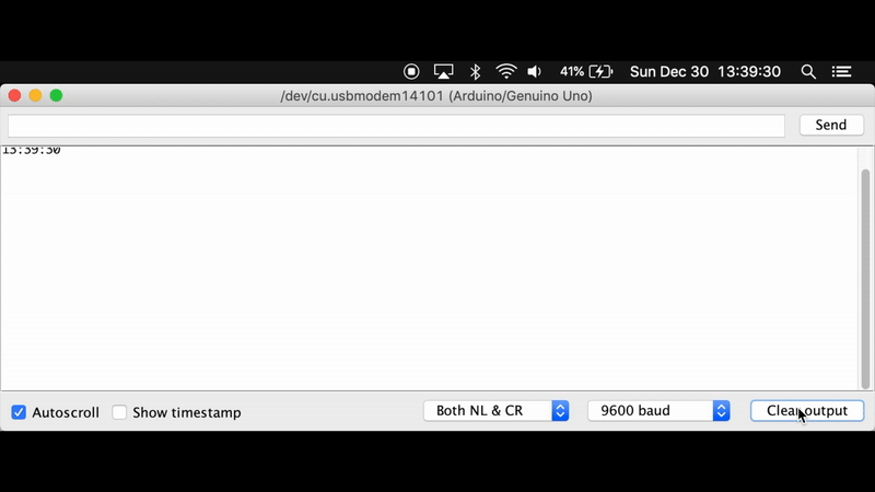 After you are happy with your programmed time. Turn off the Arduino or remove the connection to the DS3231. If you restart the Arduino (or the Serial Monitor), it will reprogram the DS3231 at the compile time from when you uploaded it. If you want to see the time without programming it again, you will need to remove the line of code that sets the time on the DS3231 and reupload the code again.