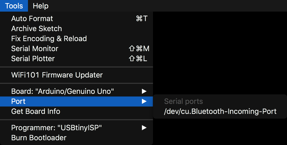 Where '...' will be the last board you programmed using Arduino (e.g. Arduino/Genduino UNO).