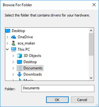 The search for drivers in this location path is not pointing to our extracted drivers. Click on Browse... to open the following window (left).