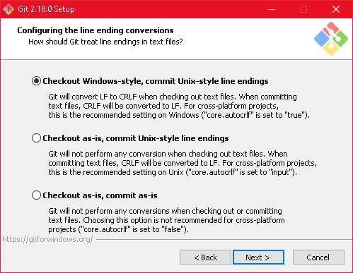 Selecting components. We do NOT recommend the Git GUI. Using the Git Bash CLI (command line interface) is how you shouild use git. We additionally added the Check daily for Git for Windows Updates.