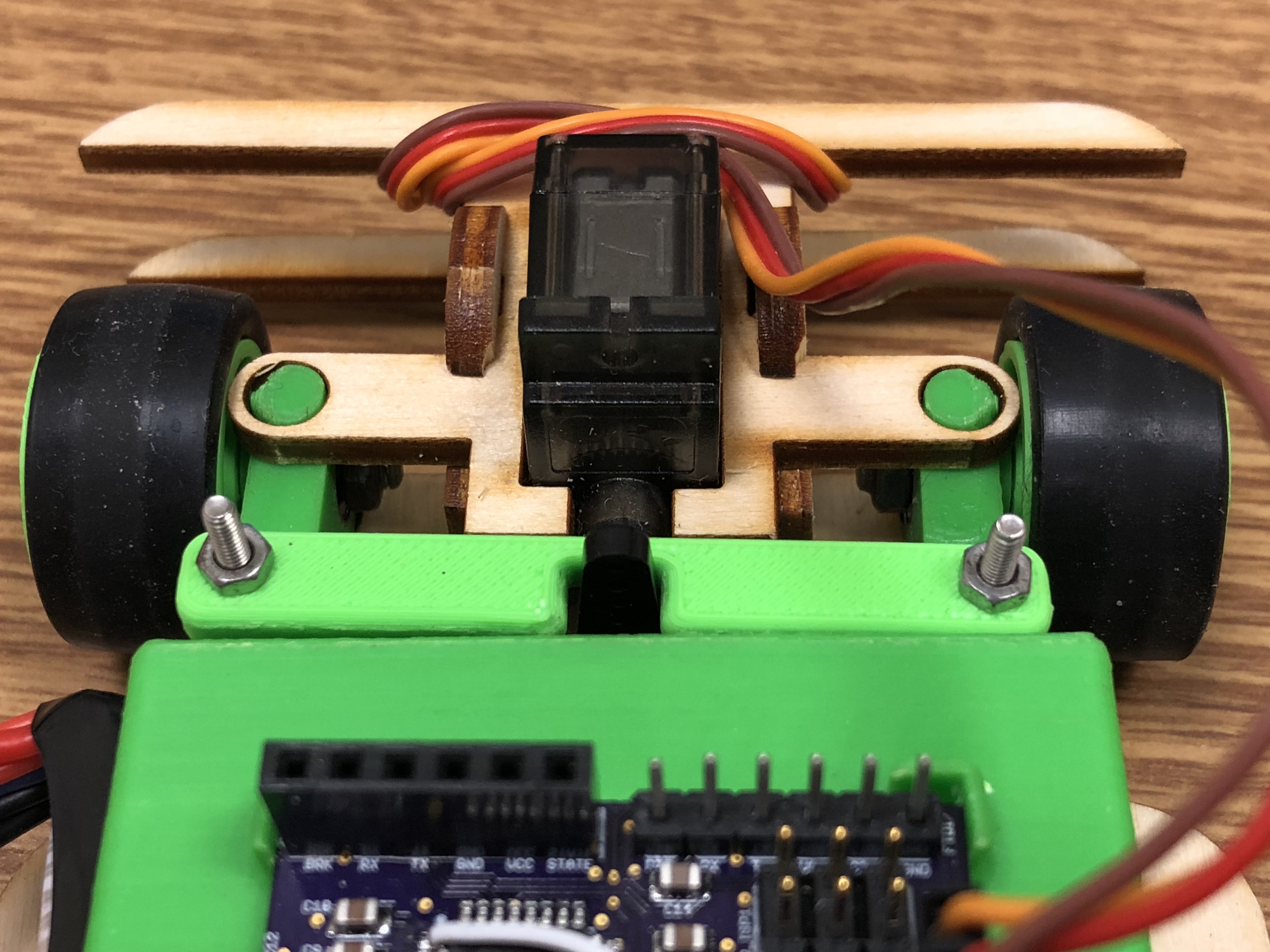 Next, we will perform servo calibrations. After all we want the car to go as straight as possible without actuating the steering thumbstick. However, some servos with the horn attached, even written at 90 degrees will not be perfectly centered. Even with this calibration it might not be perfectly centered - however, we will do our best to center it. Other reasons for non-perfect straight movement depends on the wheels, some imperfections in the wheels, 3D printed parts, and laser cut pieces.