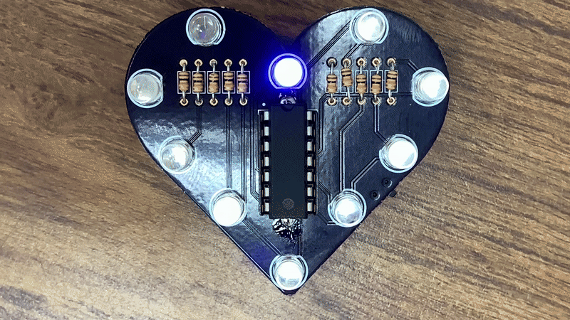 This concludes the LED Heart! We see the Aruino UNO (or other variant) in a new light and as it is meant to be - a development board. Then we explored options to program an ATtiny microcontroller to perform the same role as the Arduino UNO thus reducing cost, reducing area, and increasing overall efficiency.