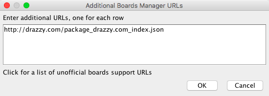 If you have additional boards you wish to install, you can place other URLS on separate lines here (e.g. Sparkfun boards).