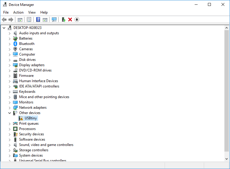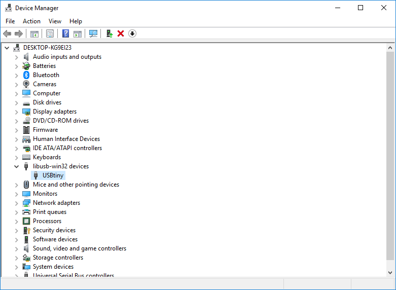 A new device category should appear called libusb-win32 devices. Expanding this category should reveal USBtiny.