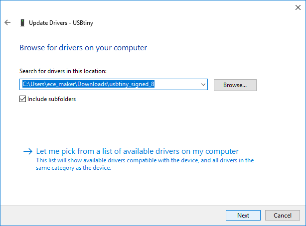 On the other hand, if you get the result on the left, then you need to follow the remaining instructions to install the driver for your Windows computer to recognize the Pocket AVR Programmer.