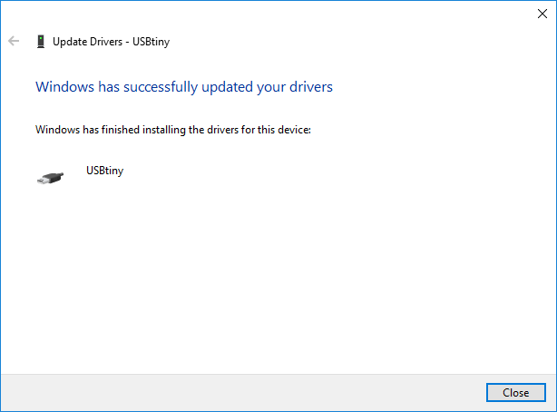 The driver is successfully installed and you should be good to go with the Pocket AVR Programmer.