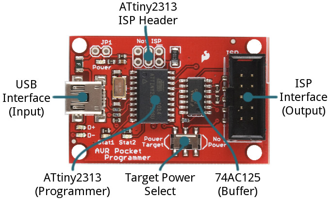 | [Optional] POCKET AVR PROGRAMMER | Digikey | 1 | Optional if using Arduino UNO as ISP. Used to bootload AVR microcontrollers. |