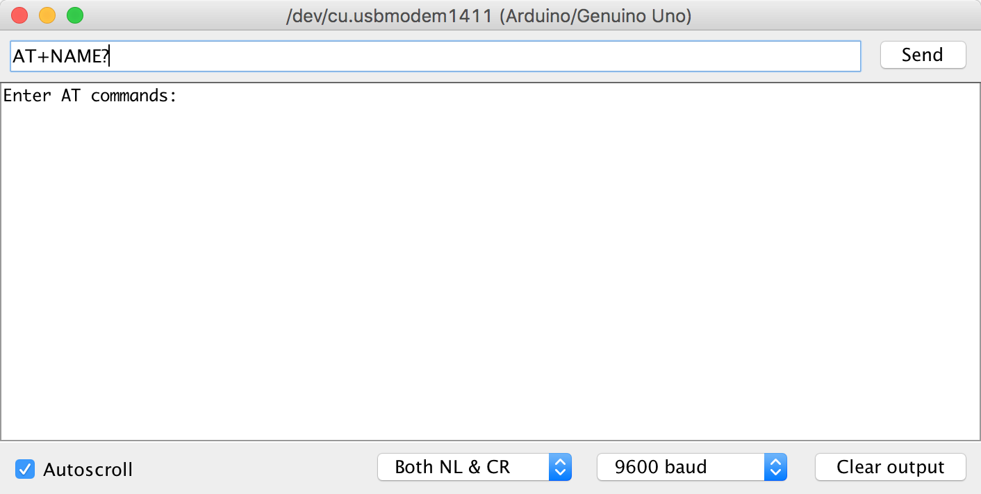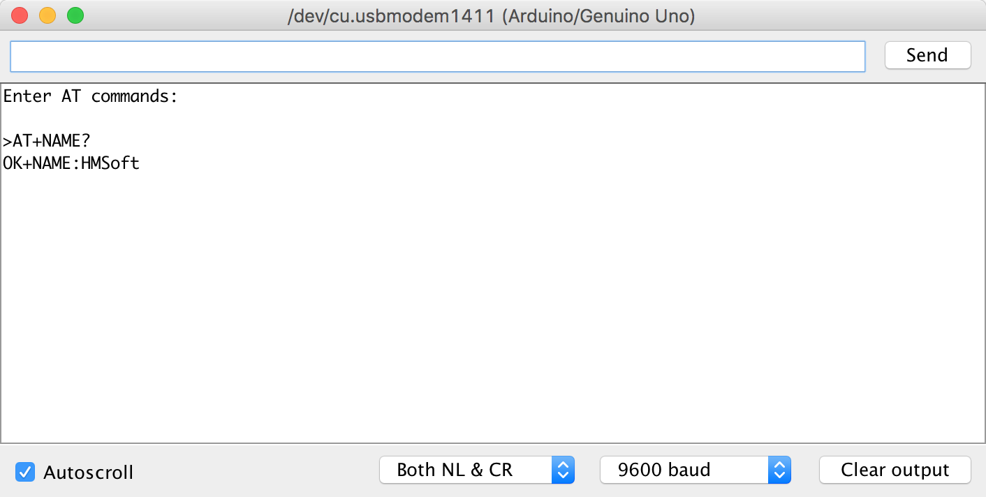 Similarly, the HM-10 operates in this way too. We will want to talk to the HM-10 with the Arduino UNO. Our Arduino program will tell the HM-10 what to send or transmit to the receiving device. The way we communicate between Arduino UNO and HM-10 is through UART. We will be explicitly using a Serial UART here with SoftwareSerial, but in the final design of a project, one can use the dedicated UART. As a final note, we will also interface with the HM-10 to program the bluetooth module using UART by addressing AT commands to the device. AT commands will be addressed in more detail in the next section, but the way we address these commands is through serial communication to the HM-10 device.
