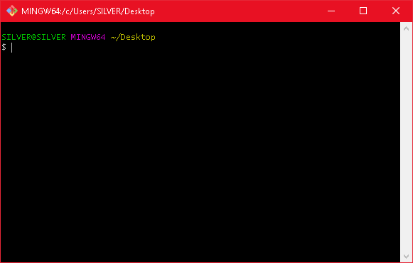 When using Git Bash on Windows, the suggested method is to navigate to the folder you wish to use git in or where you still start your git repository and right-clicking the Desktop or folder in Windows File Explorer. You will be given several options, one of which should be Git Bash Here, which will launch the following Git Bash shell:
