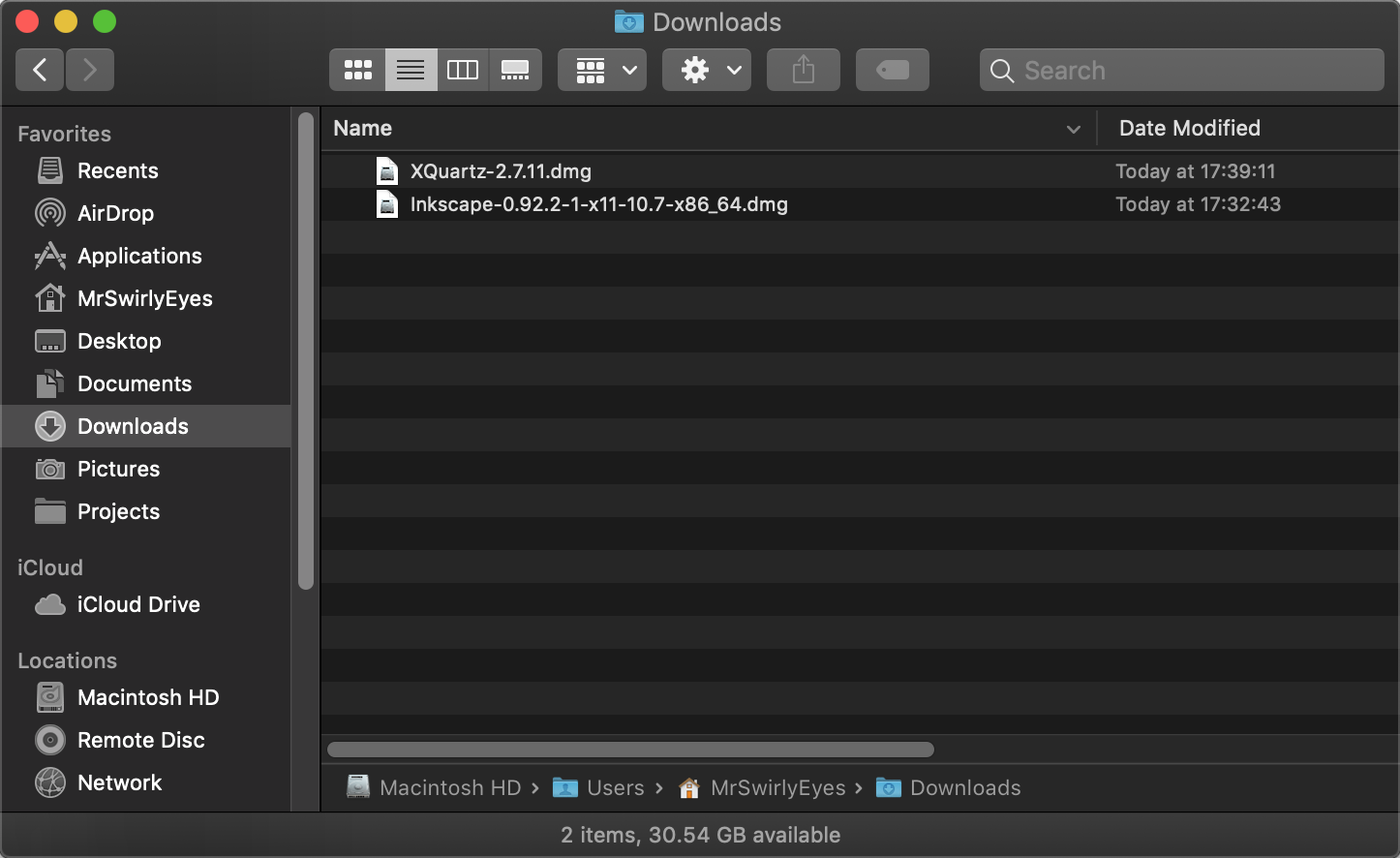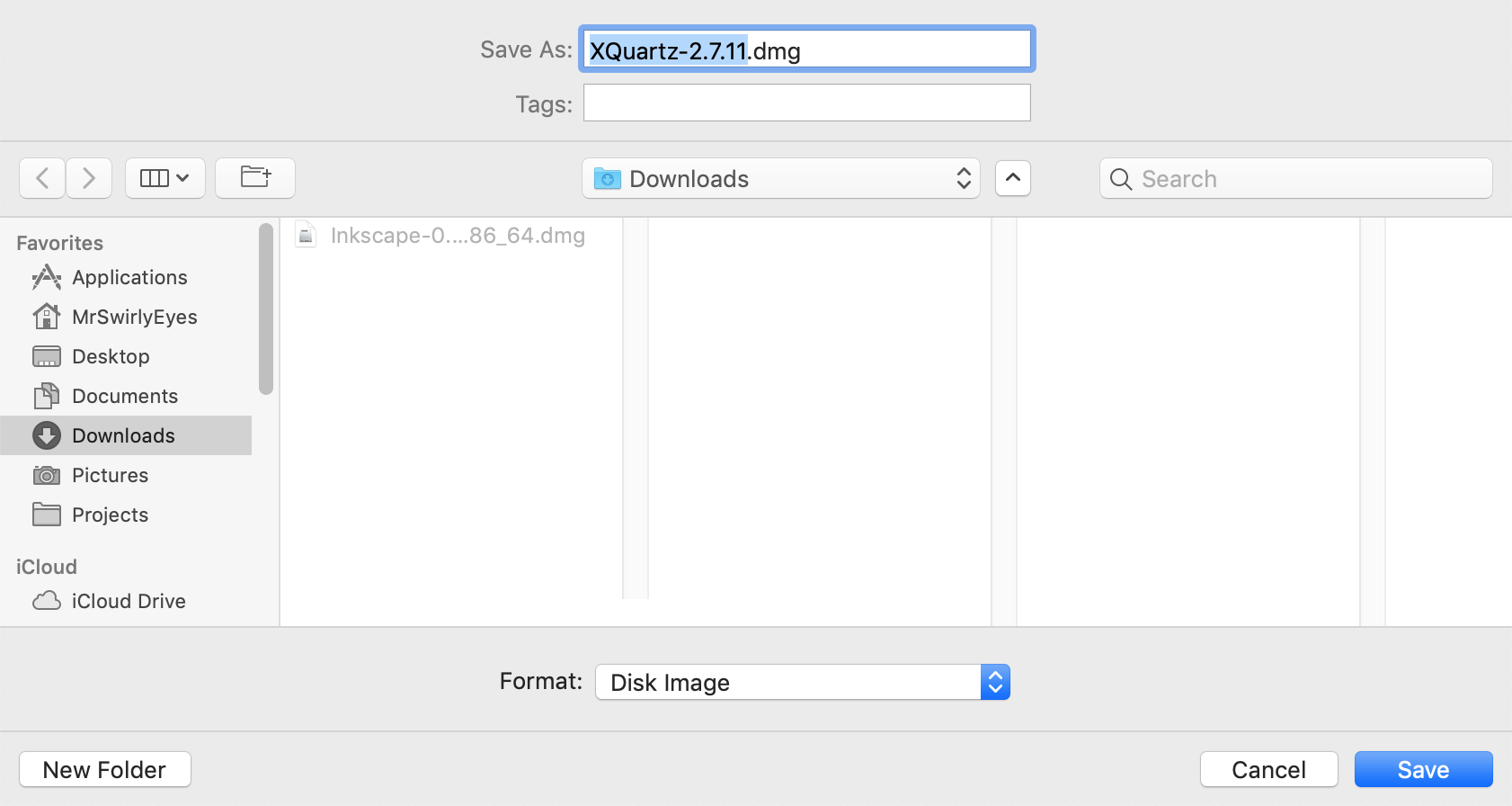 We need to install XQuartz before we install Inkscape. Launch the XQuartz .dmg.