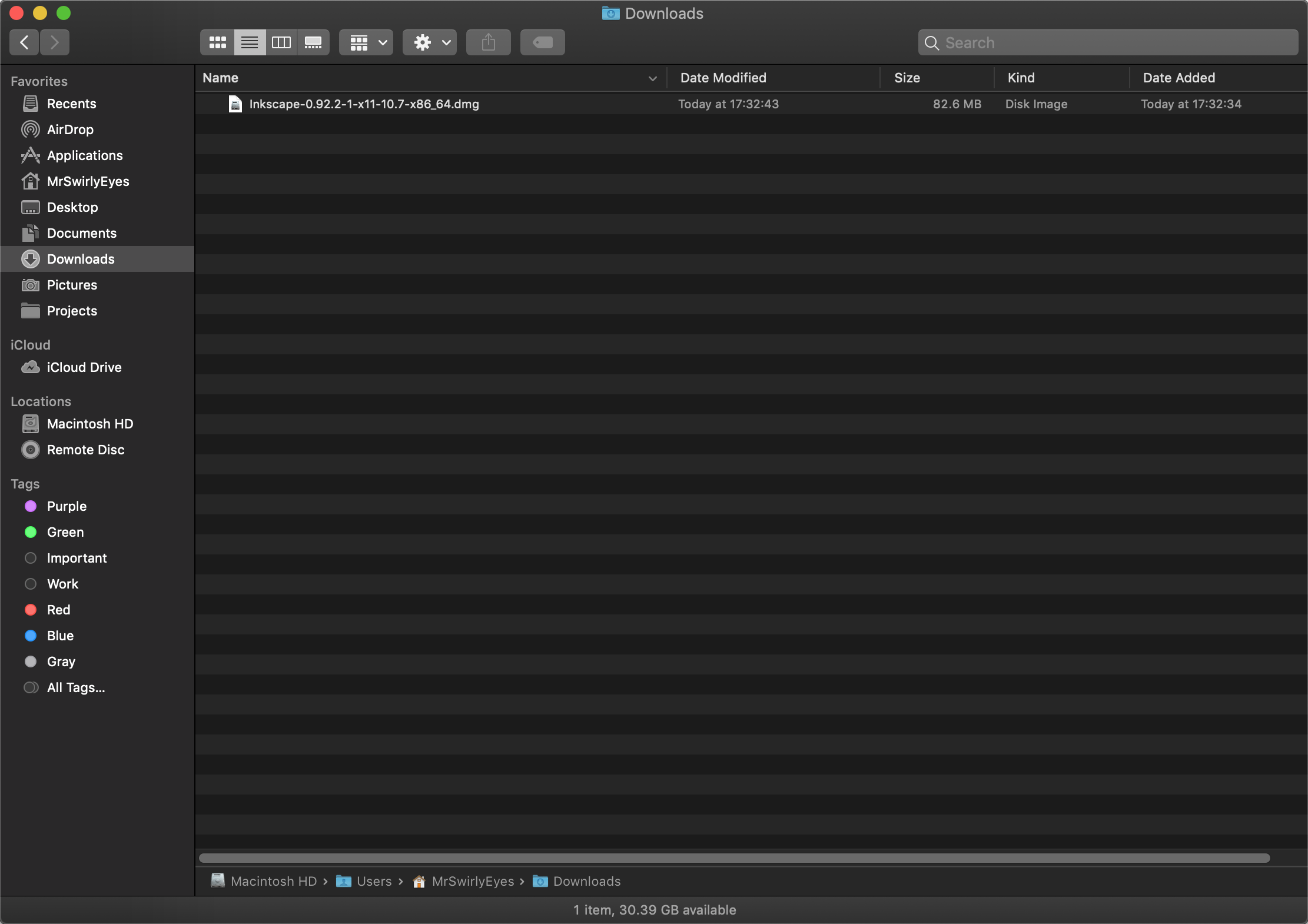 Navigate to Applications, or use the Spotlight search, and launch the Inkscape app.