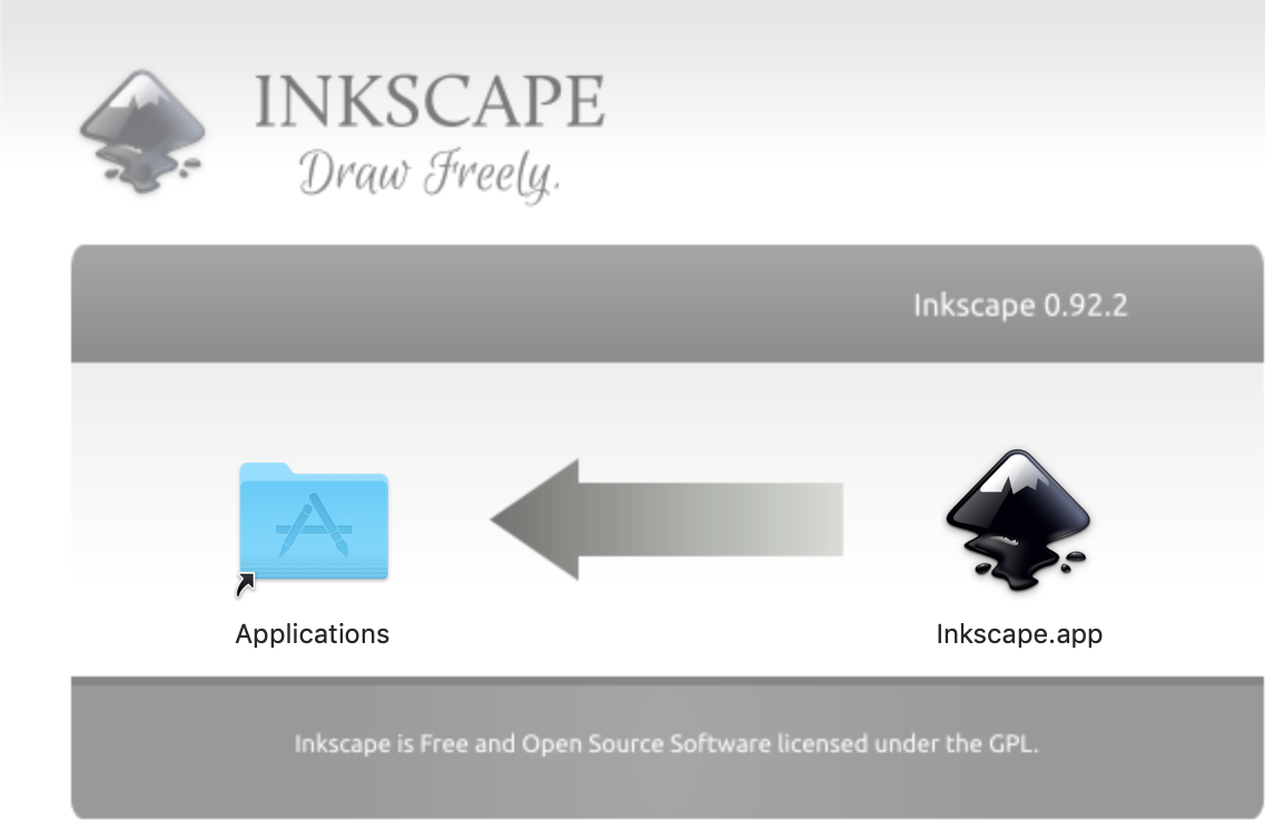 Drag the Inkscape.app into your Applications folder to install Inkscape.