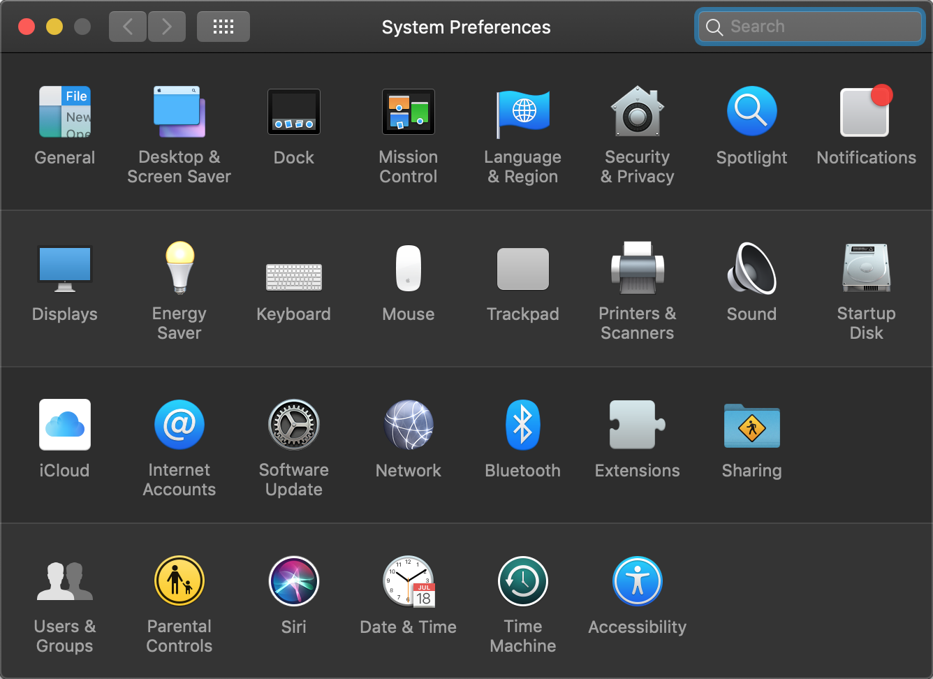 Launch the System Preferences using the Spotlight search, or navigating the Apple icon > System Preferences.