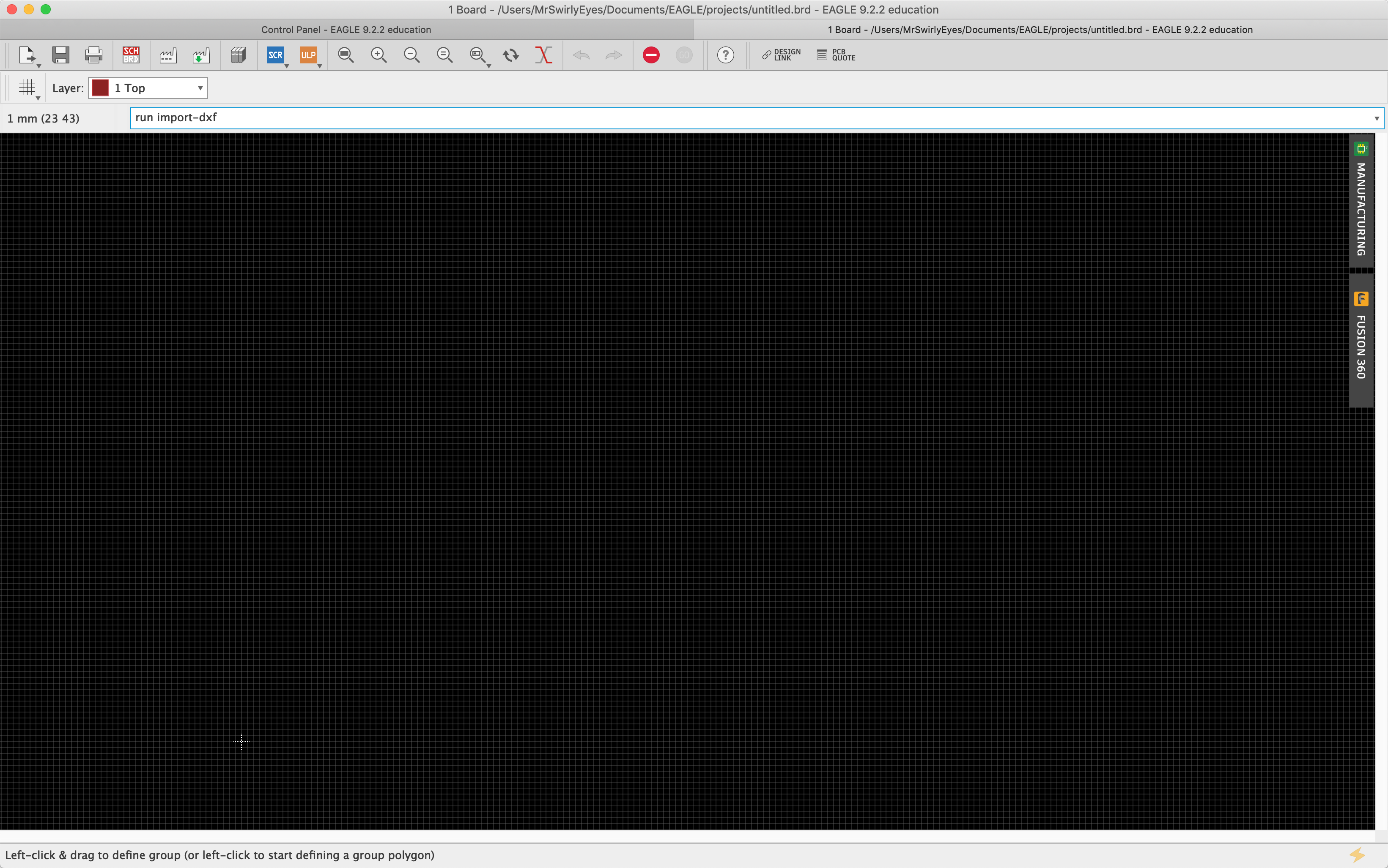 This is the general process for importing a DXF from Inkscape as your PCB board outline into EAGLE!