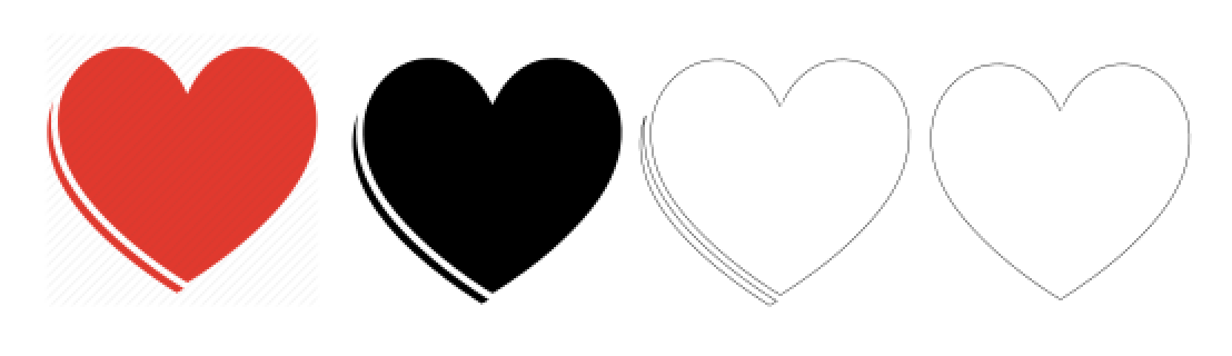 For the heart we’ve chosen, we can skip a step, but let’s say instead we chose this one, which has that extra curve after we trace the bitmap. With Path > Break Apart (CTRL+SHIFT+K), you can separate all the closed paths in an image, and delete the ones you don’t want.
